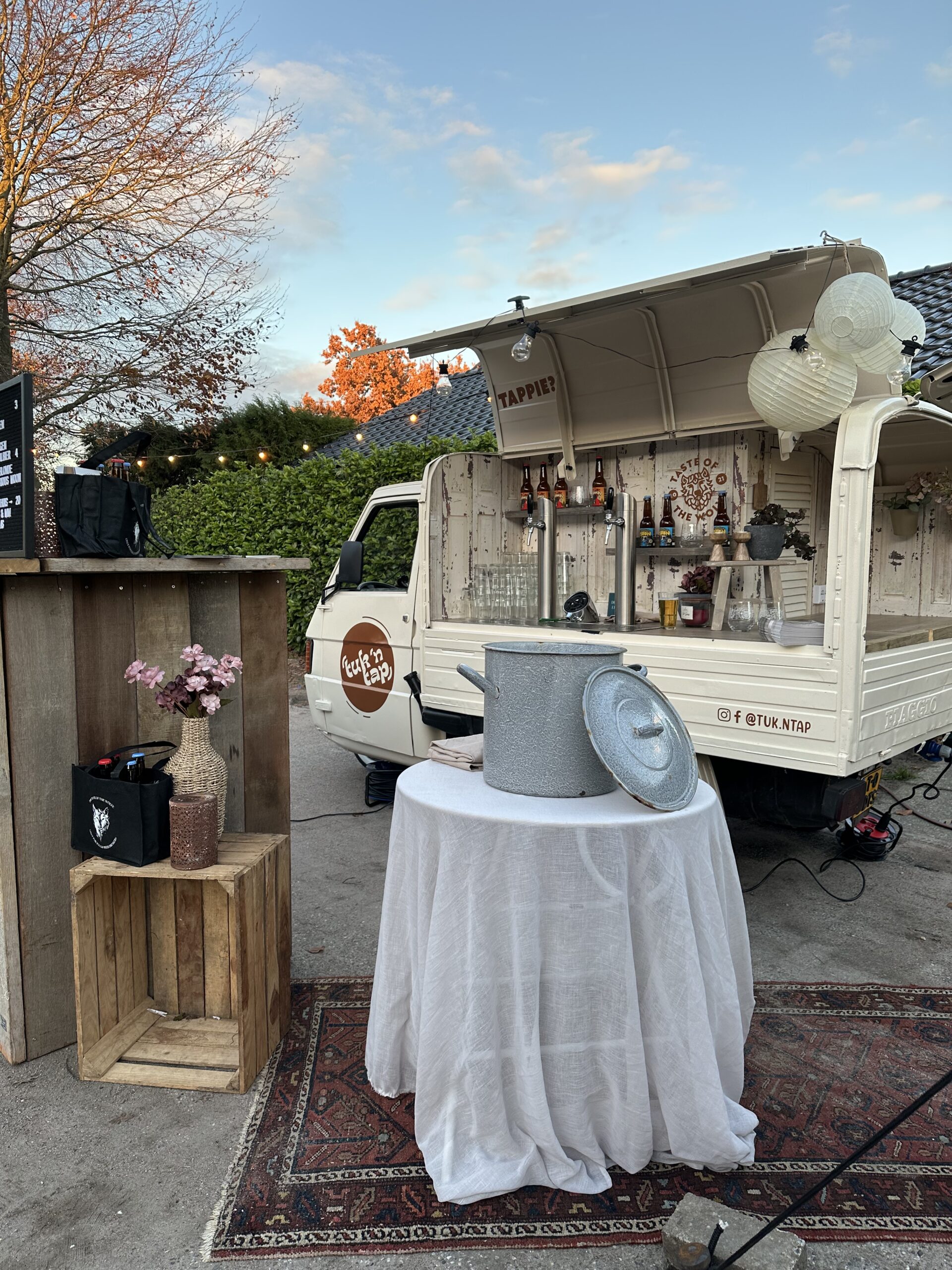 Tuk ’n Tap is compact en mobiel. We hebben slechts een doorgang van 1,50 meter en een stroom- en wateraansluiting nodig. Daardoor kunnen we op vrijwel elke locatie staan:- In jullie tuin (of van jullie ouders :))